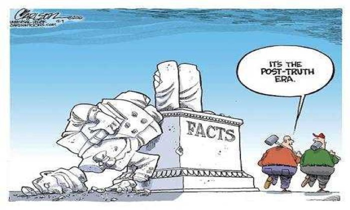 Kamus Oxford mendefenisikan “post truth” sebagai masa dimana “fakta objektif tidak lagi menjadi acuan dalam membentuk opini publik dibandingkan dengan daya tarik emosi dan keyakinan pribadi.”