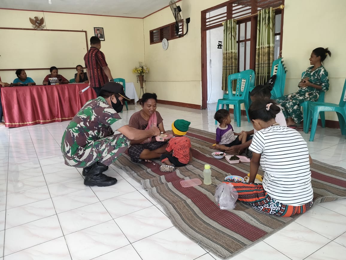 MAUMERE, Bulir.id – Babinsa Desa Watugong Ramil 1603-01/Alok Menghadiri Kegiatan Pemberian Makanan Tambahan (PMT) bagi anak-anak yang masuk dalam kategori Stunting di wilayah binaan koramil 1603-01/Alok di Desa Watugong, Kec. Alok Timur, Kab.Sikka, Selasa (12/04/2022).
