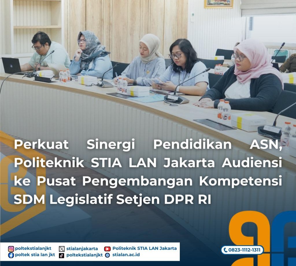 Jakarta, BULIR.ID – Dalam rangka memperluas jejaring dan memperkuat sinergi pengembangan kompetensi sumber daya manusia aparatur, Politeknik STIA LAN Jakarta melaksanakan audiensi ke Pusat Pengembangan Kompetensi SDM Legislatif Sekretariat Jenderal (Setjen) DPR RI pada hari Selasa, 8 Juli 2025. Kegiatan ini dipimpin langsung oleh Wakil Direktur I Bidang Akademik Politeknik STIA LAN Jakarta, Dr. Mala Sondang Silitonga, MA.